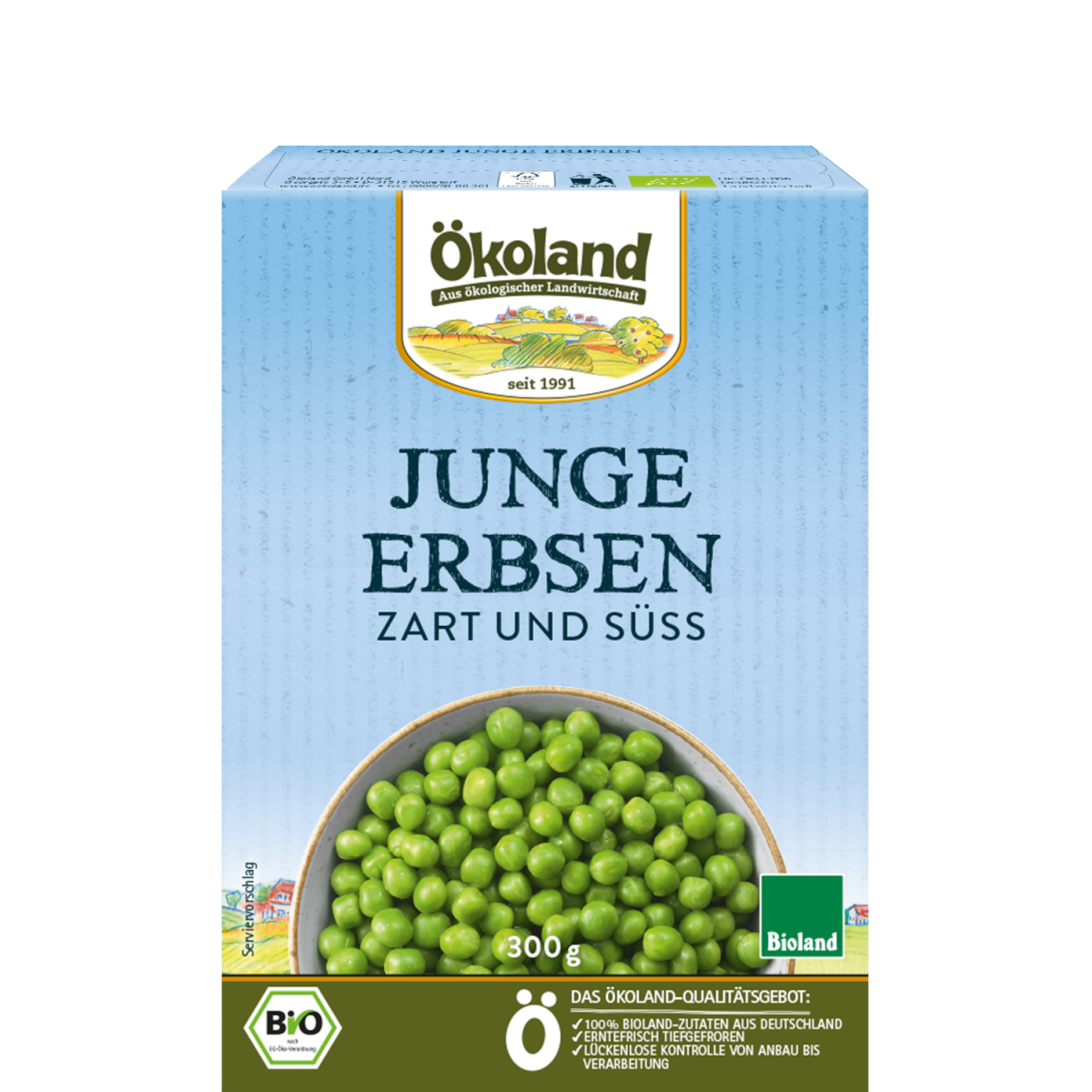 Die Erbsen werden geerntet, gewaschen, blanchiert, farbsortiert und tiefgefroren.