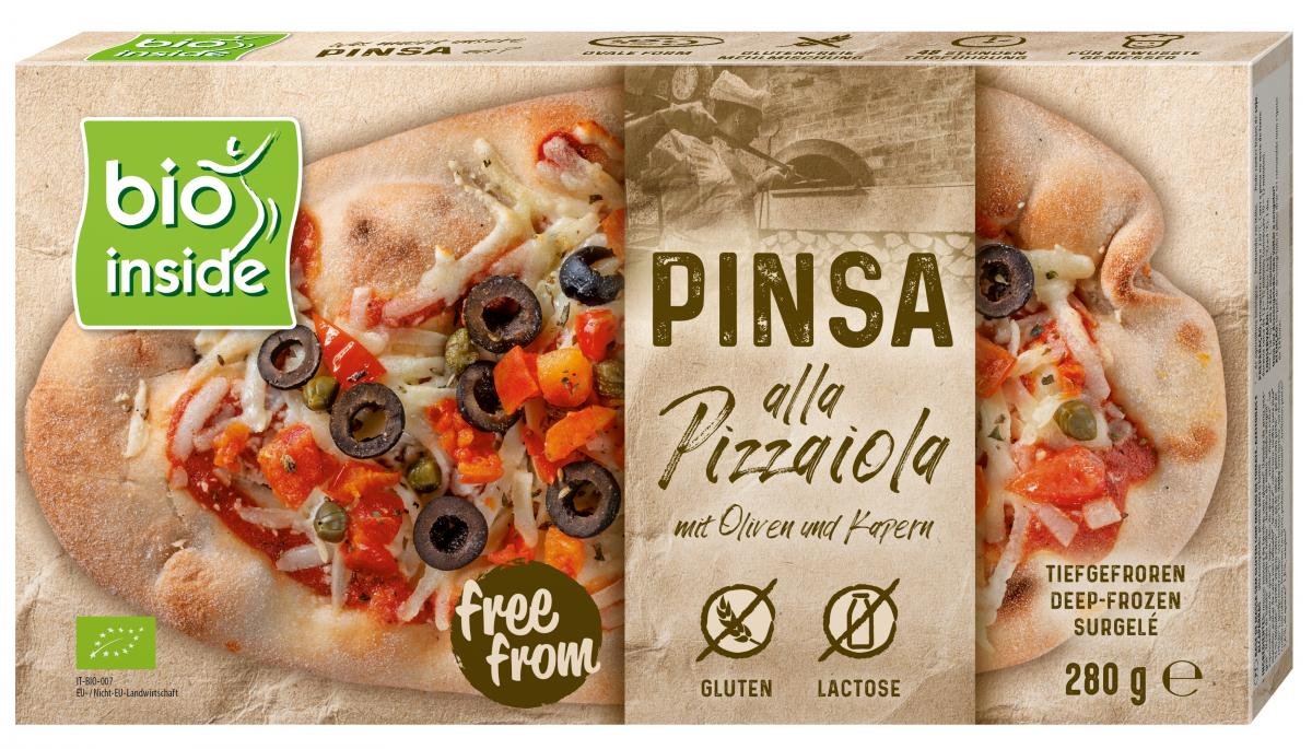Die glutenfreien Pinsas von bio inside werden in Italien nach traditionellen Rezepten von Hand gefertigt. Ihren knusprig-zarten Boden verdanken sie einer extra langen Teigführung mit wenig Bio-Hefe. Nach einer 48-stündigen Ruhezeit wird der Teig von Hand geformt und mit Bio-Zutaten belegt. Den authentisch-italienische Geschmack bekommt die Pinsa durch das Vorbacken im Ofen.