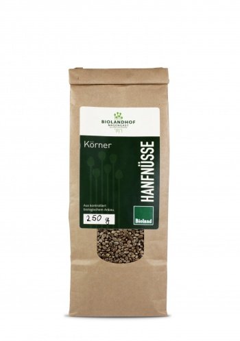 Nutzhanf ist nahezu frei von THC (max. 0,2 % Tetrahydrocannabinol). Der Anbau ist genehmigungspflichtig und wird von der BLE (Bundesanstalt für Landwirtschaft und Ernährung) überwacht. Dank ihres feinen, nussigen Geschmacks lassen sich unsere Bio-Hanfnüsse sehr gut in den täglichen Speiseplan integrieren. Sie sind eine Bereicherung für Joghurts, Salate, Müslis, Nudel-und Reisgerichte. Röstet man die Samen in einer Pfanne leicht an, so kann der Geschmack noch einmal verstärkt werden. Hanfnüsse sind auch sehr gut zum Knabbern geeignet.