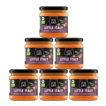 Inspiriert von dem italienischen Klassiker Minestrone, vereint die „Little Italy“ die frischen Aromen von Paprika, Tomaten, Zucchini und Auberginen in bester Bio-Qualität. Italienische Kräuter sorgen für ein mediterranes Geschmackserlebnis alla Mamma.