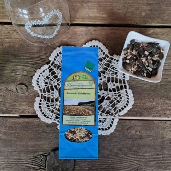 Unsere Bioland-Salatkerne sind eine köstliche Kernmischung aus gerösteten Bioland-Kürbiskernen, geröstetem Bioland-Buchweizen, gerösteten Bioland-Sonnenblumenkernen und naturbelassenen Bioland-Hanfsamen. Perfekt als Topping für Salat, Bowls, Desserts oder Suppen und eine wertvolle Zutat für die kreative Bio-Küche.