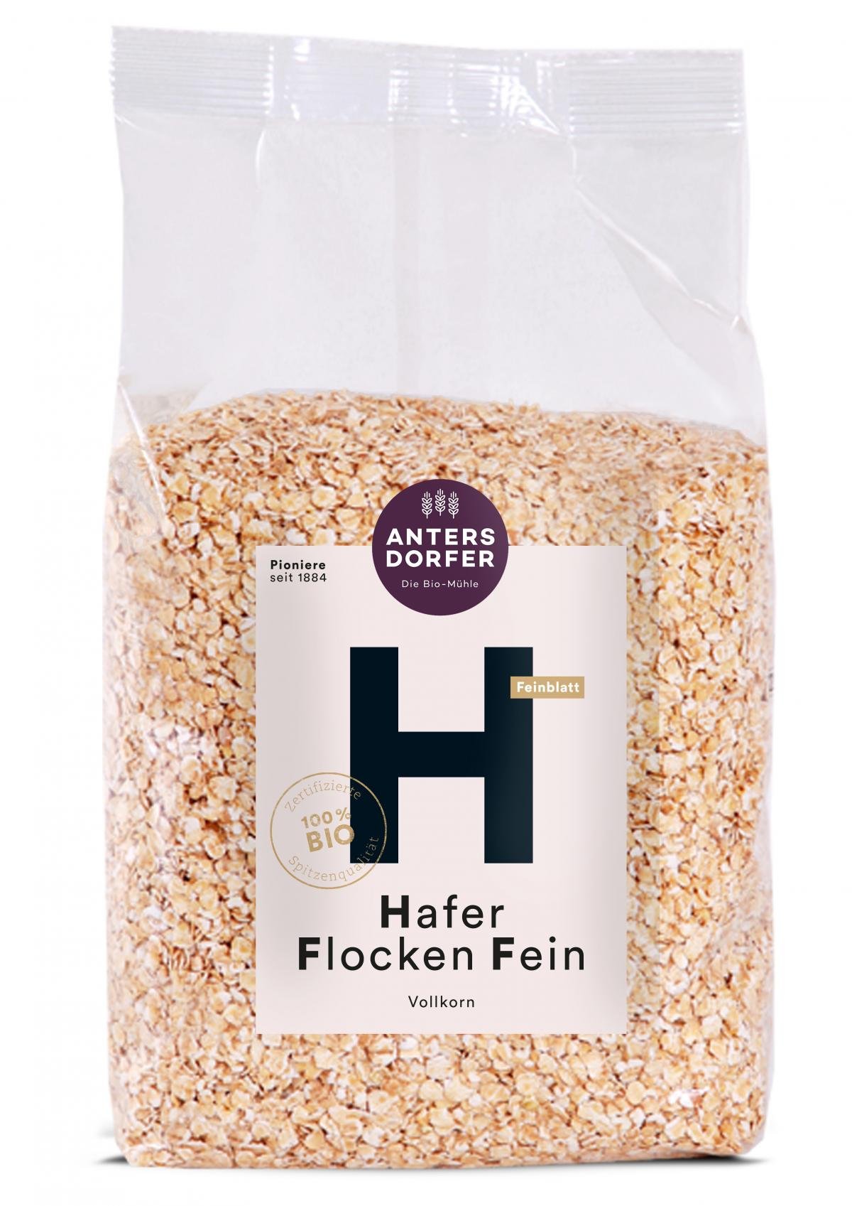 'Die aus Hafergrütze hergestellten Feinblattflocken enthalten die wertvollen Inhaltstoffe des Getreides, quellen aber im Gegensatz zu ihren groben Verwandten schneller auf und sind weicher im Biss.